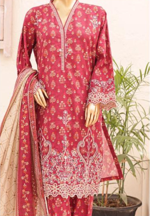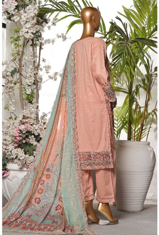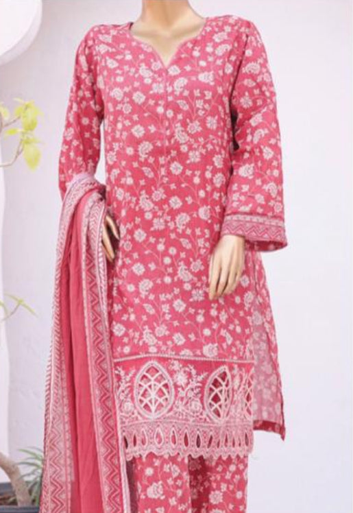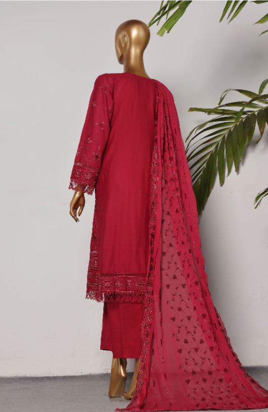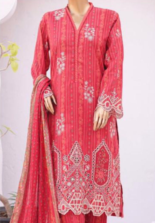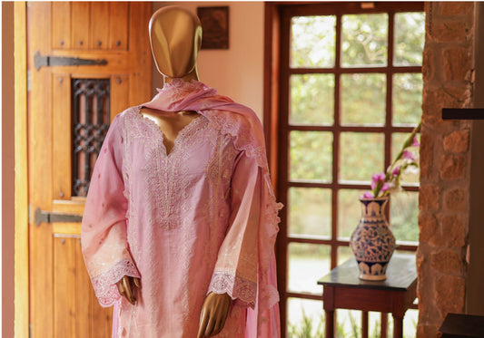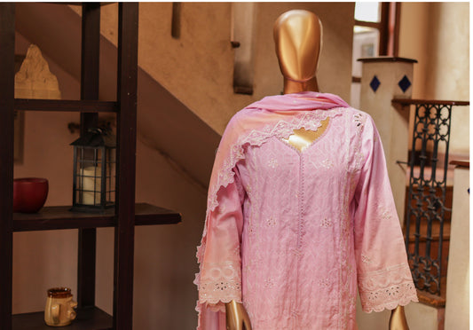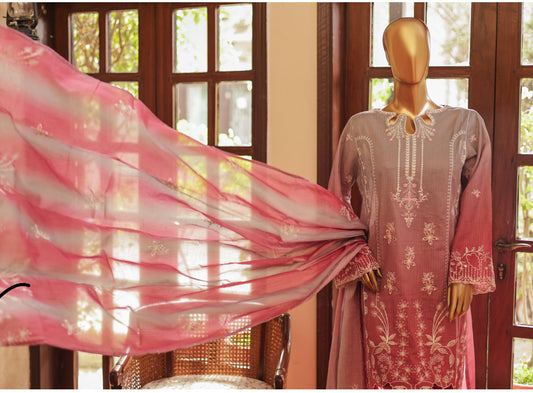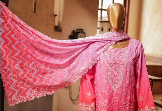 Luxury 3 Piece Lawn with Embroidered Chiffon Dupatta - PINK