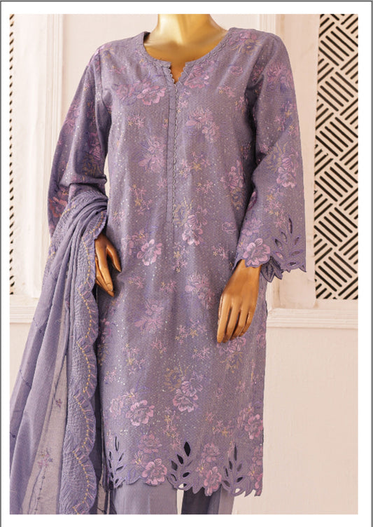Summer Cutwork Embroidery 3 Piece - PURPLE