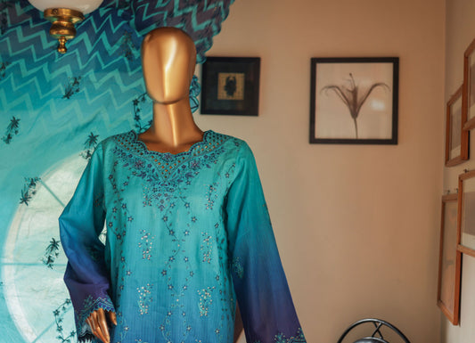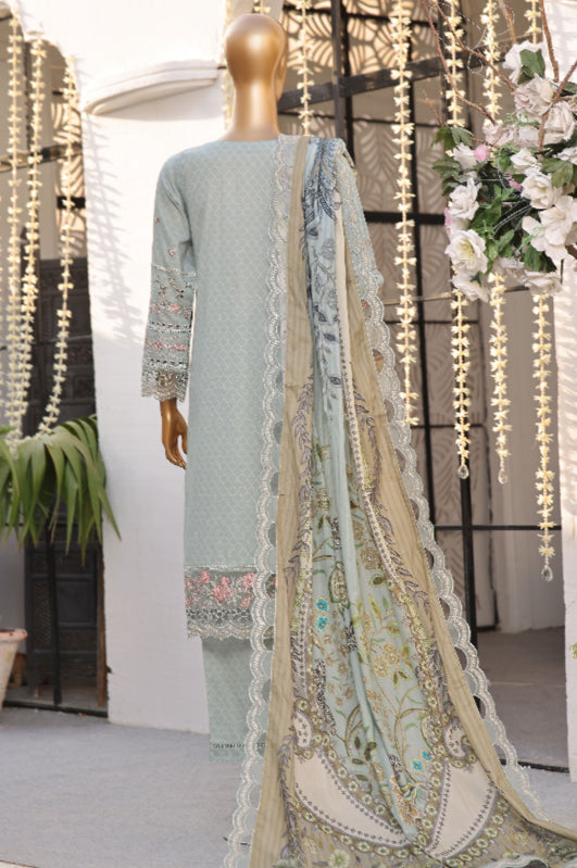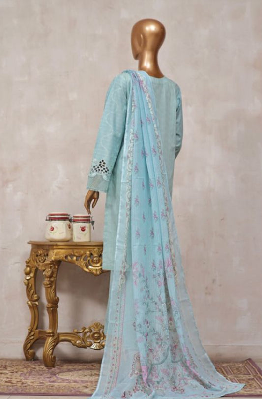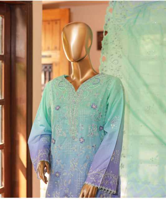 Summer Cutwork Embroidery 3 Piece - SKY BLUE