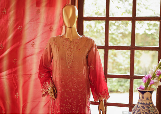 Eid Tara Bagh Exclusive Chicken Kari 3 Piece Lawn Wear - RED/ORANGE