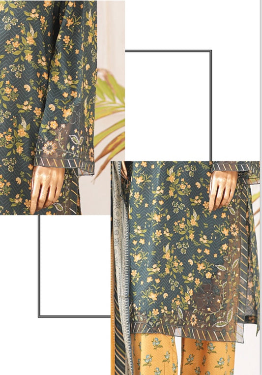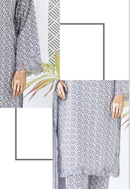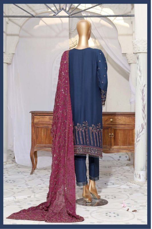 Luxury 3 Piece Lawn with Embroidered Chiffon Dupatta - DARK BLUE