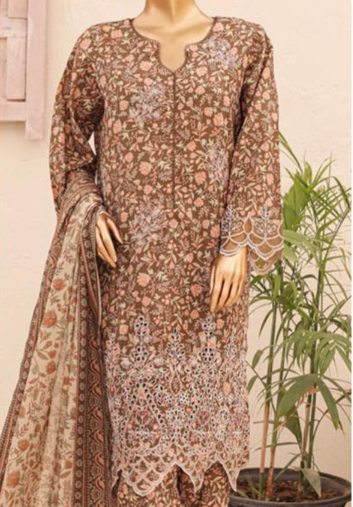 Eid Tara Bagh Exclusive Chicken Kari 3 Piece Lawn Wear - BROWN