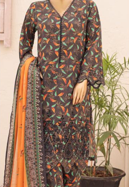 Eid Tara Bagh Exclusive Chicken Kari 3 Piece Lawn Wear - ORANGE