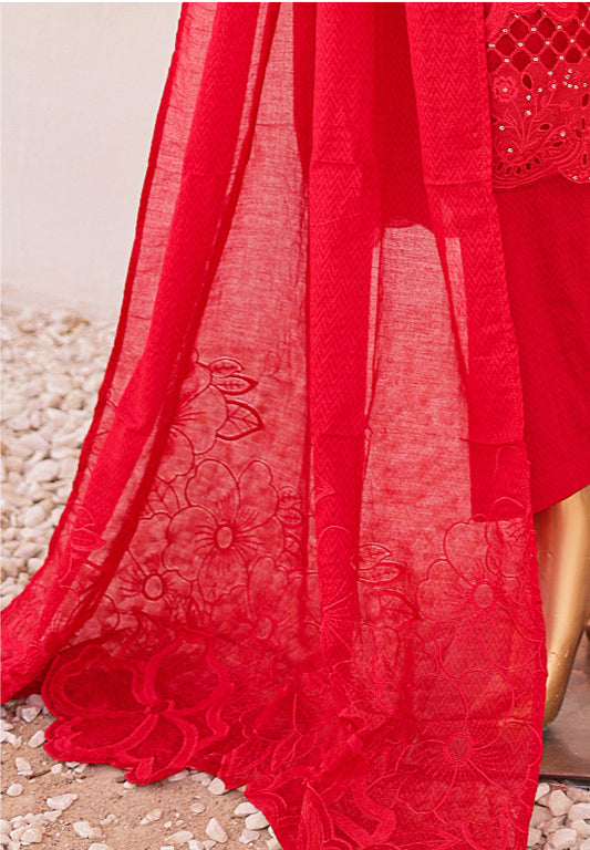 Cutwork Full Embroidered Shirt & Dupatta EID Collection - RED